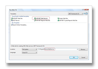 first I have opened a web service from File>New web site > web service named "DemoWebService".